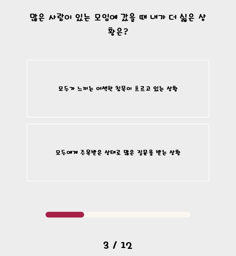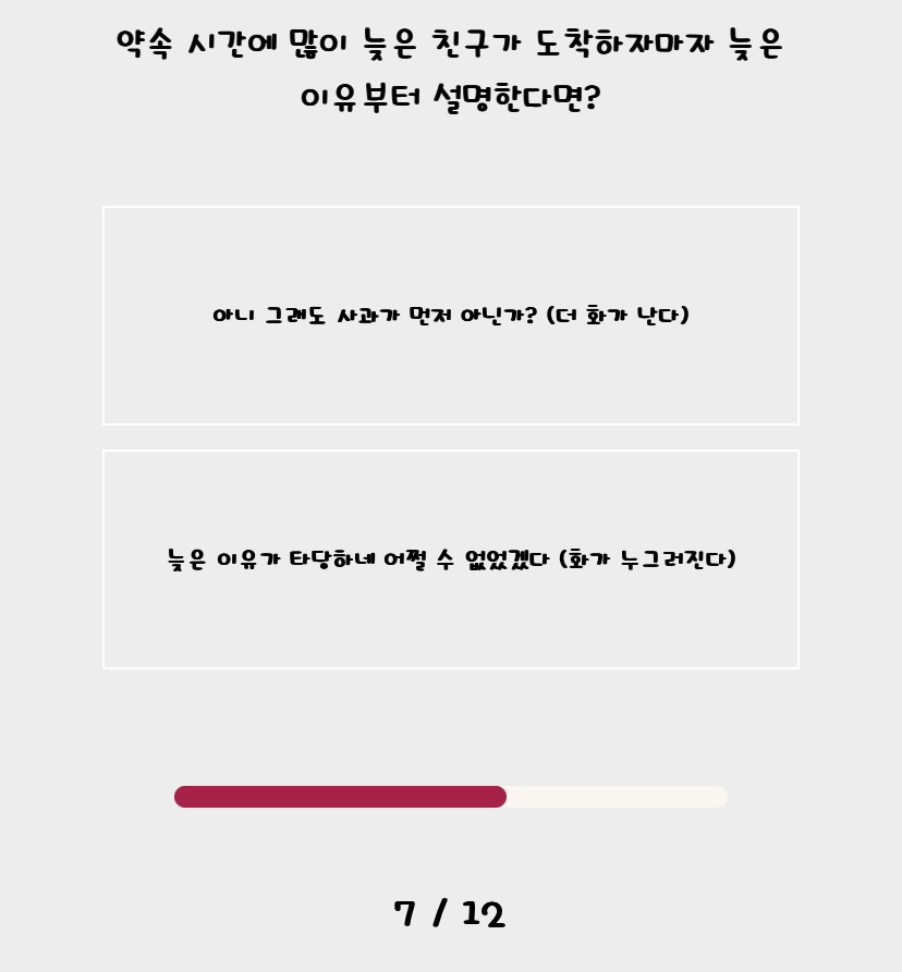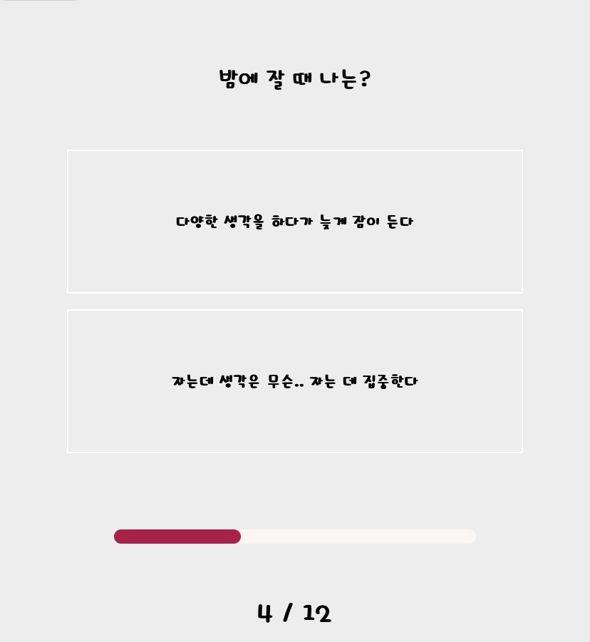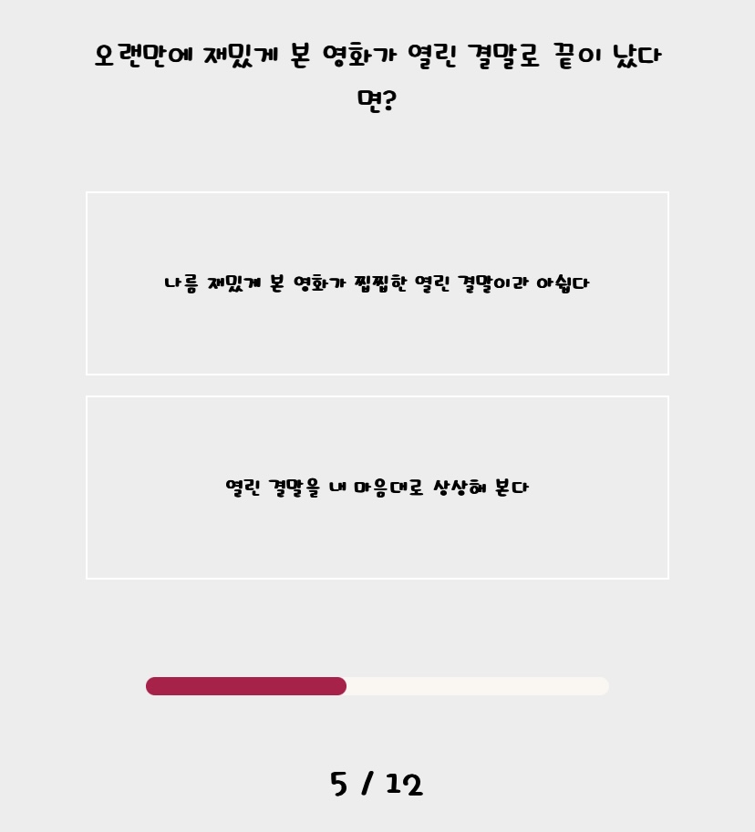 문항들이 확실히 제 취향이 반영된 항목들이 많아서 선택하는데 어려움이 없었던 것 같아요.