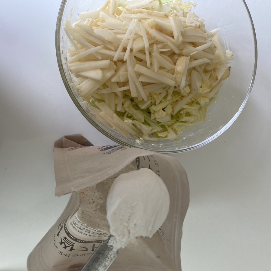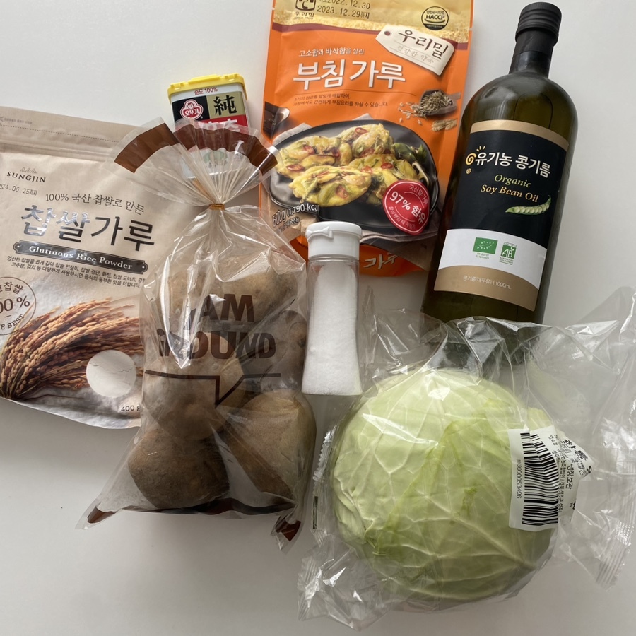 안녕하세요! 야채는 먹어야겠고, 샐러드는 먹기 싫고... 양배추랑 감자가 있어서 오랜만에 전 만들어 먹었어요.