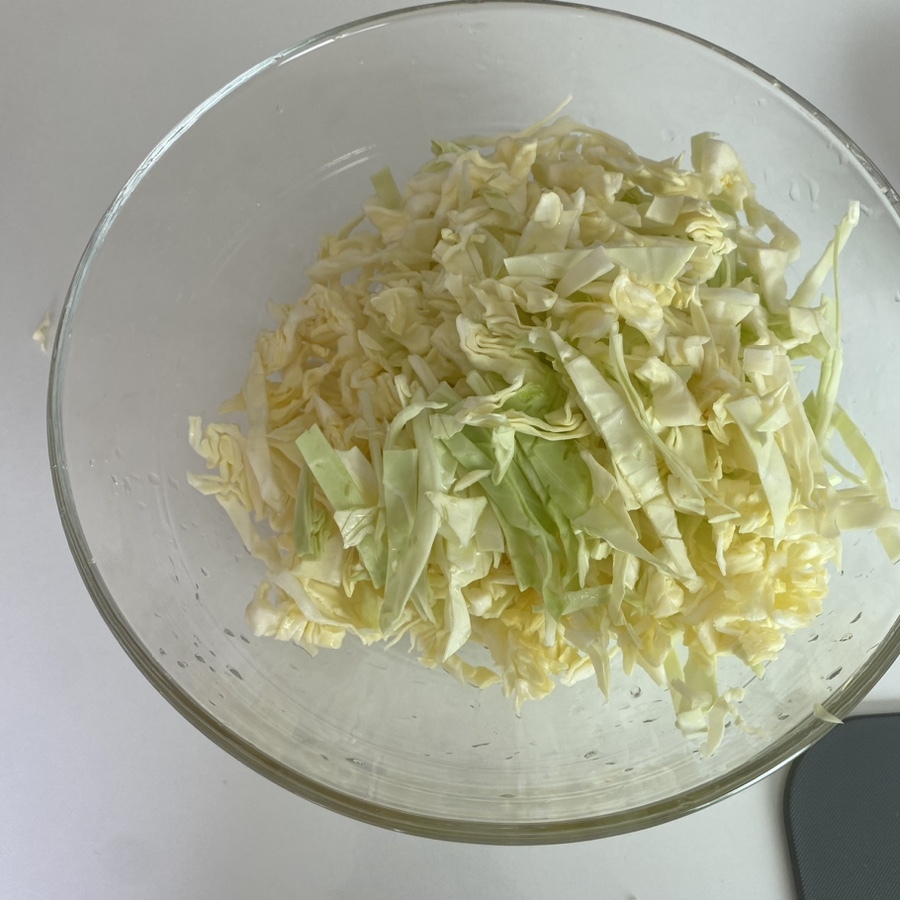 3. 양배추 심지를 잘라내고 잎들을 얇게 썰어주세요. (엉망진창 칼질 ㅋㅋㅋㅋ 그만큼 초보도 가능한 요리!)