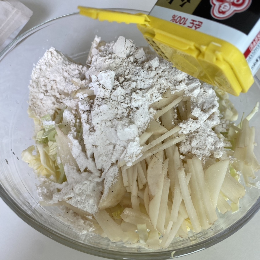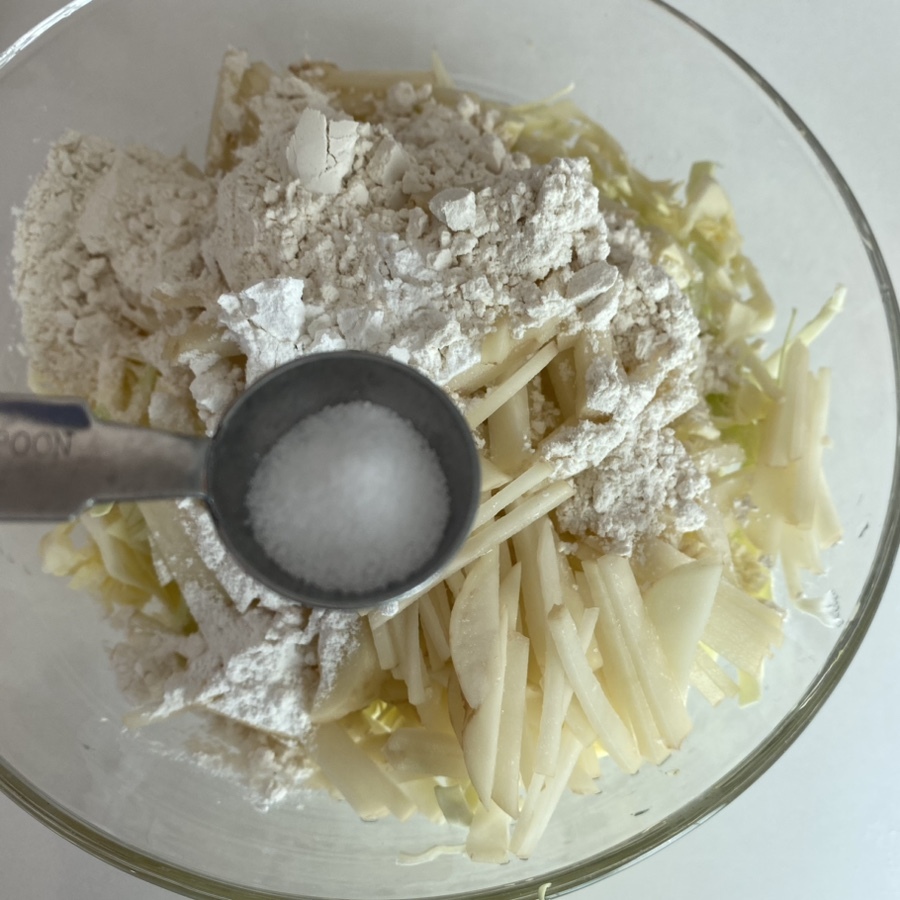 7. 부침가루는 크게 두 스푼 넣어주세요.