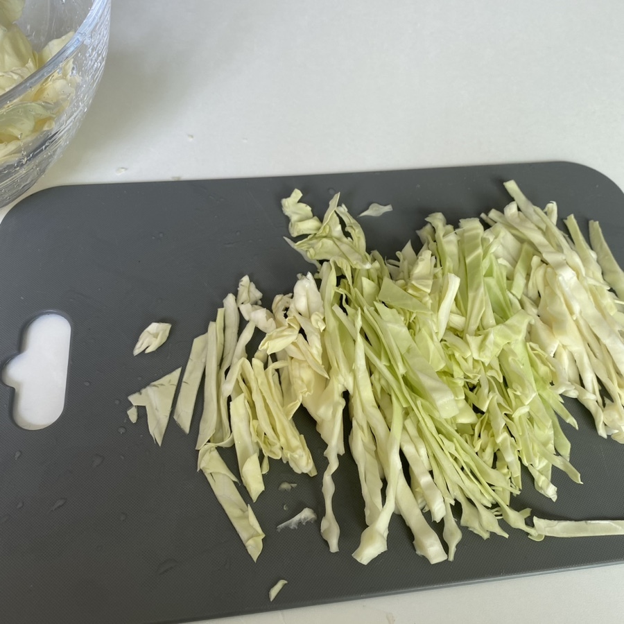 2. 양배추에 있는 물기를 빼줍니다.