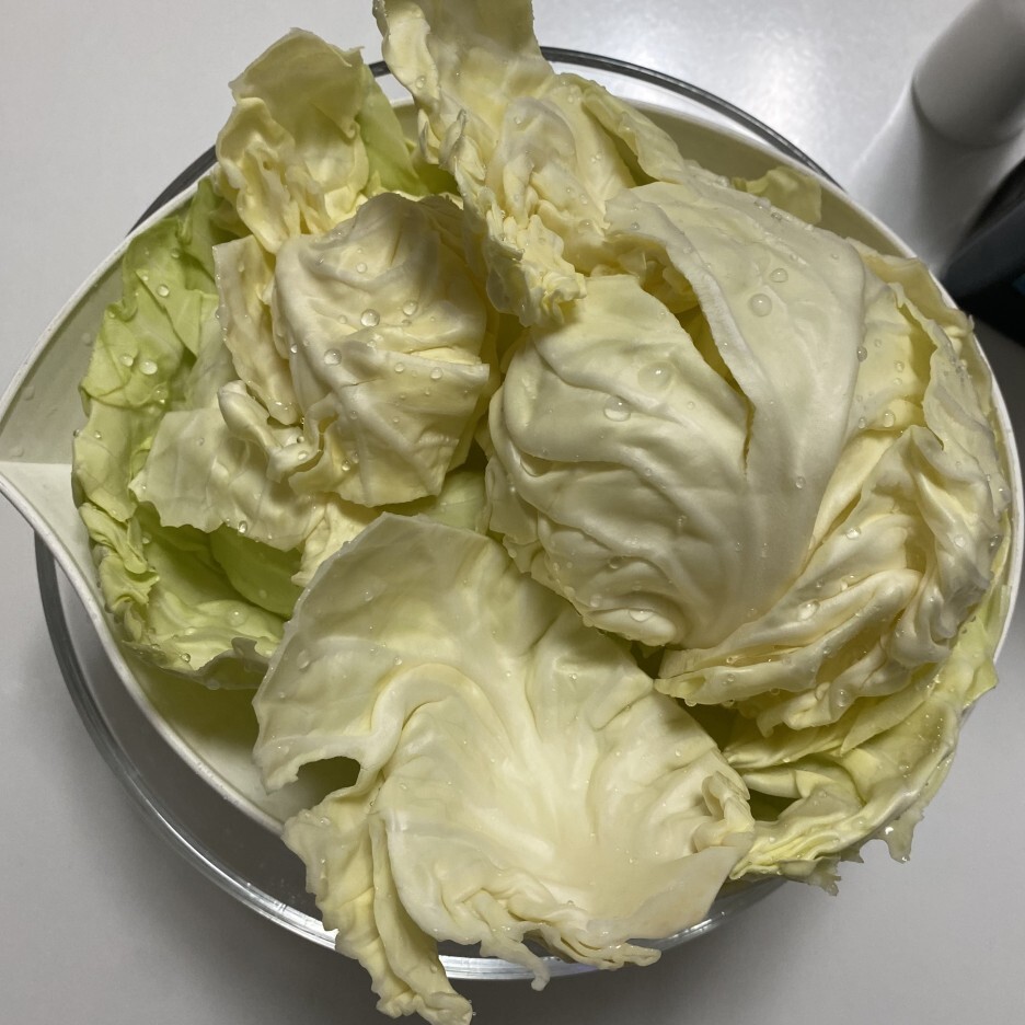 1. 양배추 반 포기를 깨끗이 씻고 물을 빼줍니다.
