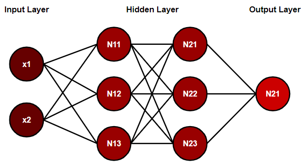 입력층에서 입력된 신호가 은닉층의 연산을 거쳐 출력층에서 값을 내보내는 과정
