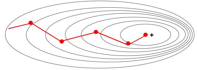 위의 그림에서 확률적 경사 하강법과 일반적인 경사 하가업에서 경사 하강이 어떻게 일어나는지 차이를 볼 수 있음