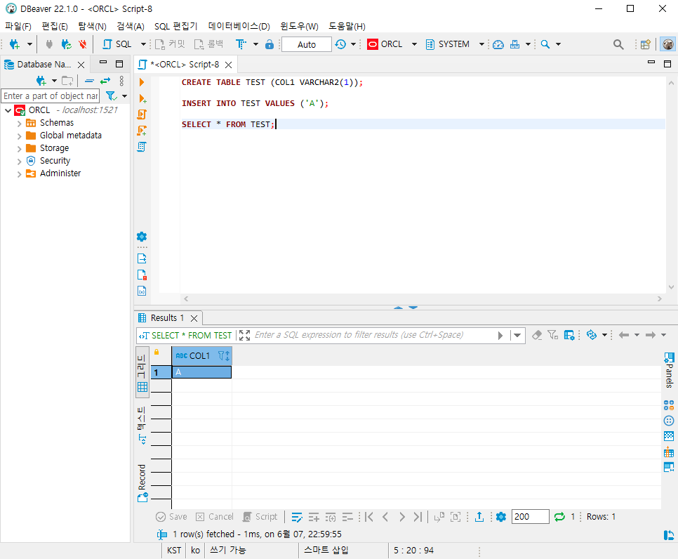 21. 테스트 테이블 생성 후 데이터 넣고 조회해보기