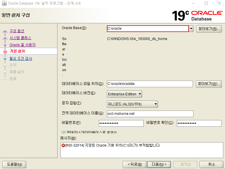 7. 설치 경로 지정 후 비밀번호 입력하고 다음 클릭