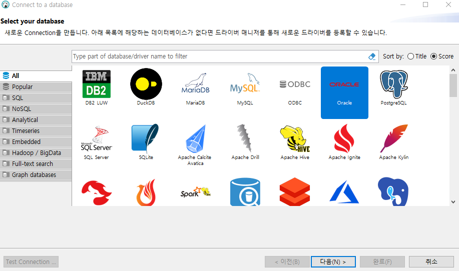 16. DBeaver 실행 후 오라클 선택하고 다음 클릭